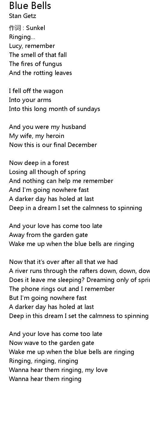 | Wake me up when the blue bells are ringing | |