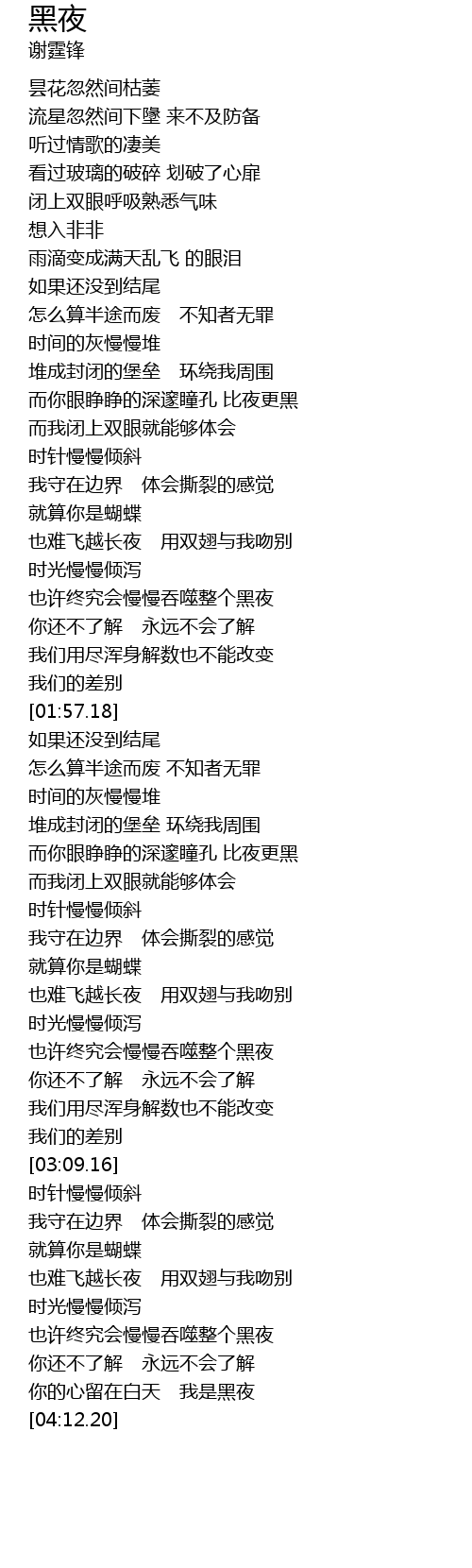 | [03:43.38] | 也难飞越长夜 用双翅与我吻别 |