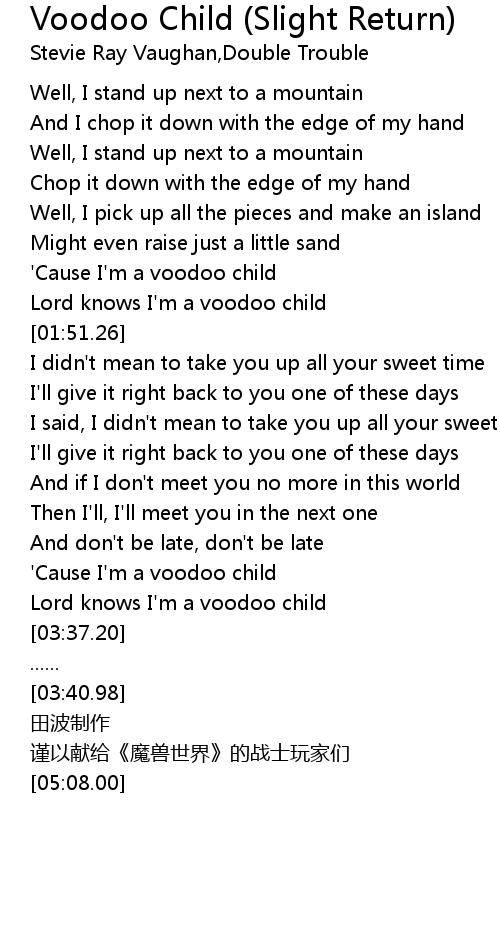 | [03:26.62] | ' Cause I' m a voodoo child |