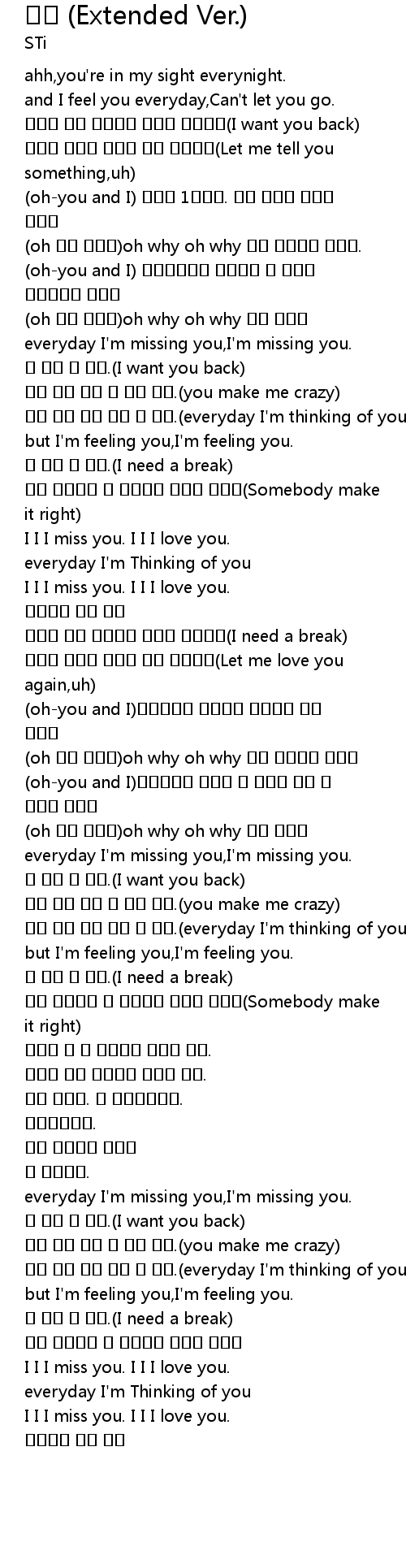 | [02:11.34] | 떠난 니가 자꾸 내 눈에 보여.(you make me crazy) |