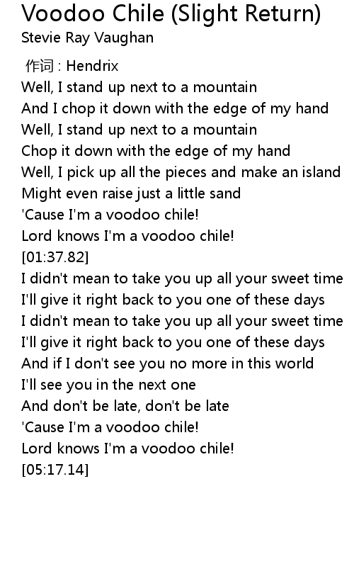 | [01:27.51] | ' Cause I' m a voodoo chile! |