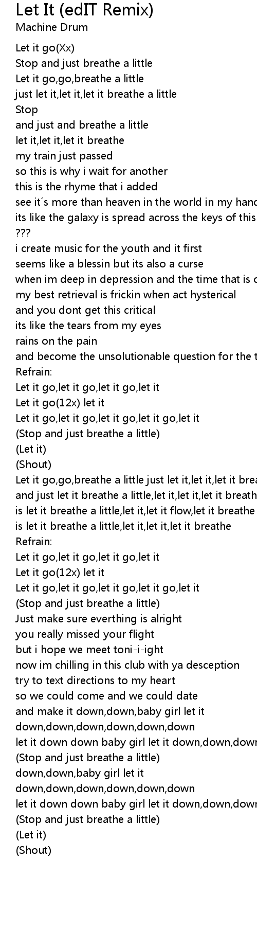| Let it go,go,breathe a little just let it,let it,let it breathe a little stop | |