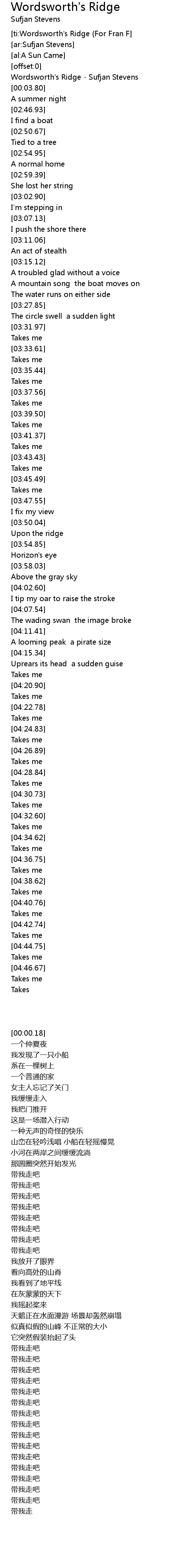 [ti:Wordsworth's Ridge (For Fran F] |