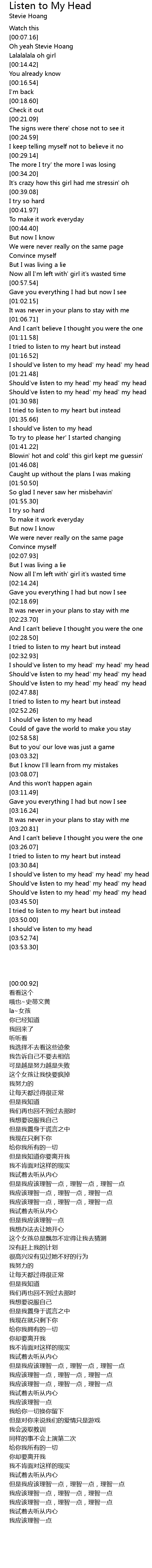 I should've listen to my head' my head' my head |