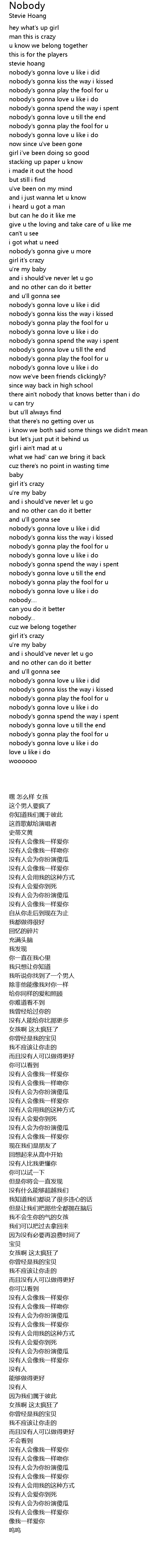 nobody's gonna love u like i do |