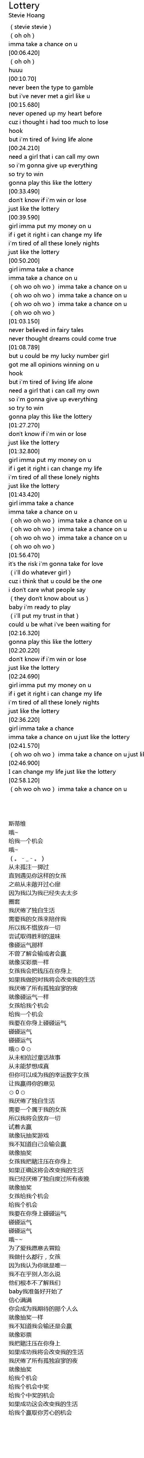 | [02:42.590] | (oh wo oh wo) imma take a chance on u just like the lottery |