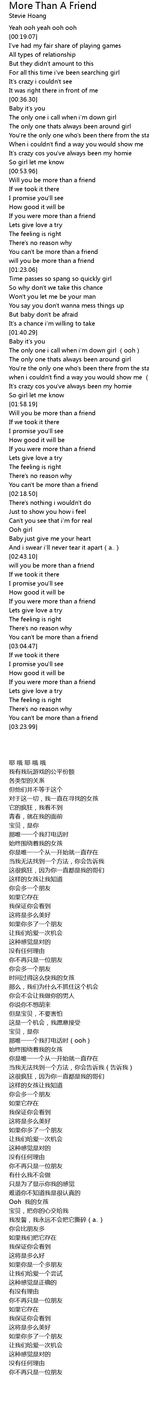 | [02:53.53] | If you were more than a friend |