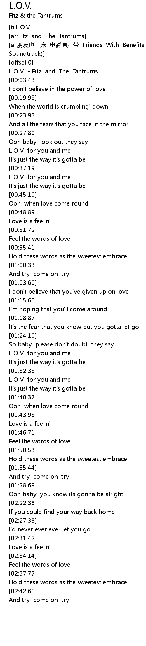 | [00:01.32] | L O V - Fitz and The Tantrums |
