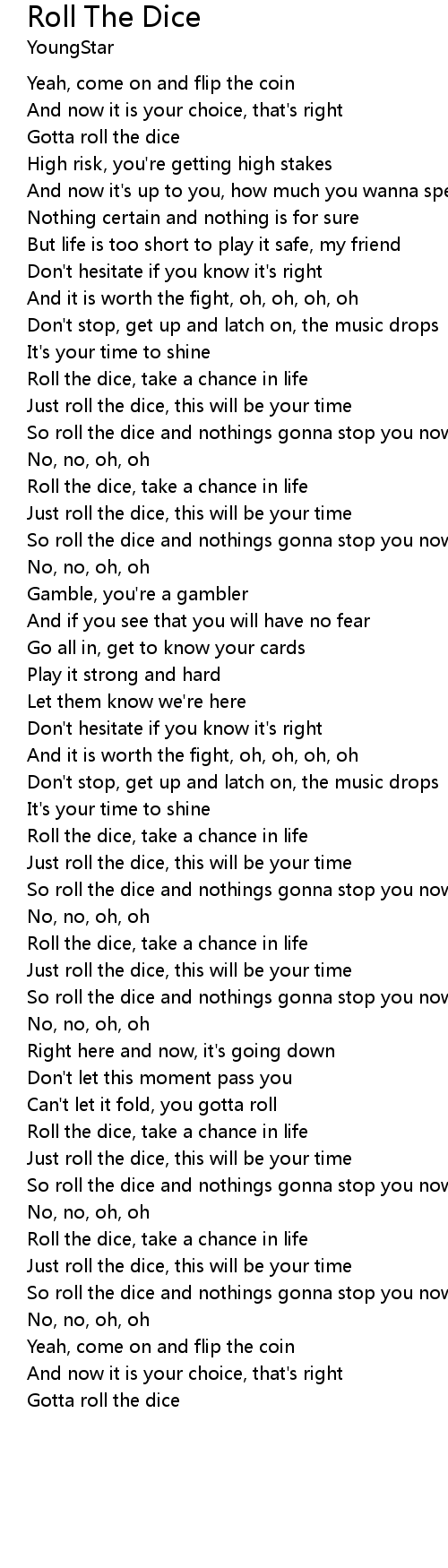 So roll the dice and nothings gonna stop you now |