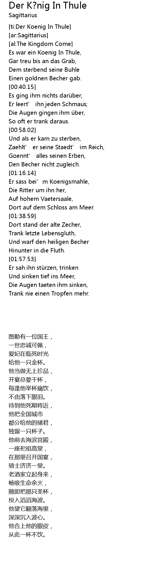 | [00:20.66] | Es war ein Koenig In Thule, |