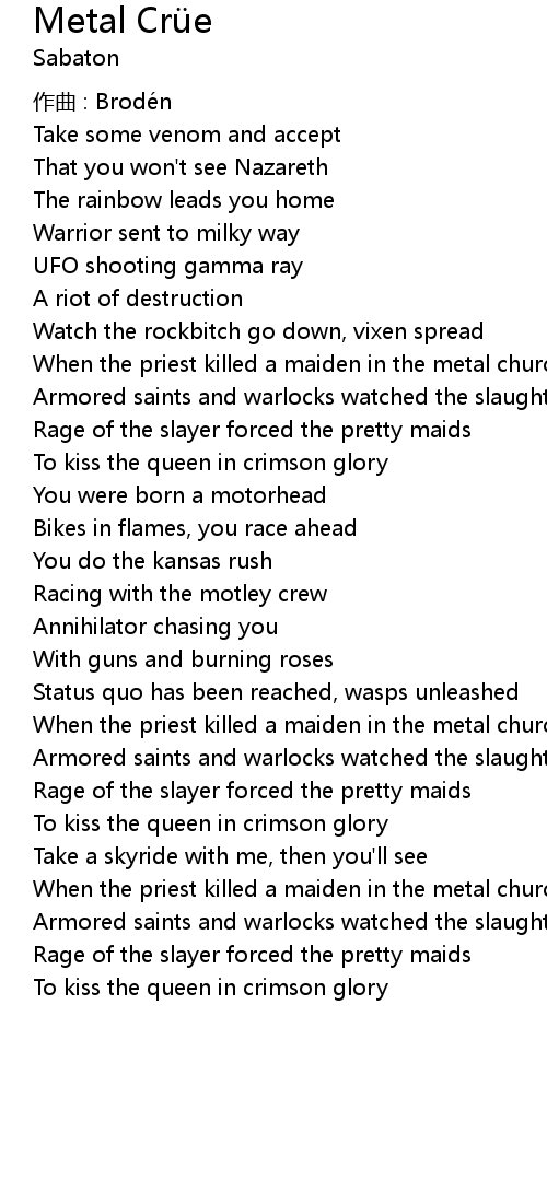 Metal Crüe Metal Crü e Lyrics