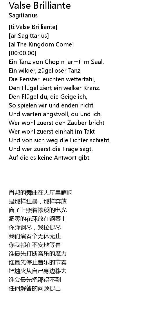 | [00:24.15] | Ein Tanz von Chopin larmt im Saal, |