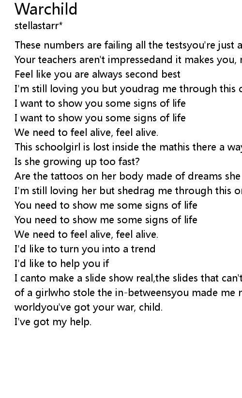 I canto make a slide show real,the slides that can't be seenwill tell the story of a girlwho stole the in-betweensyou made me realize,you made me fall into your worldyou've got your war, child. |