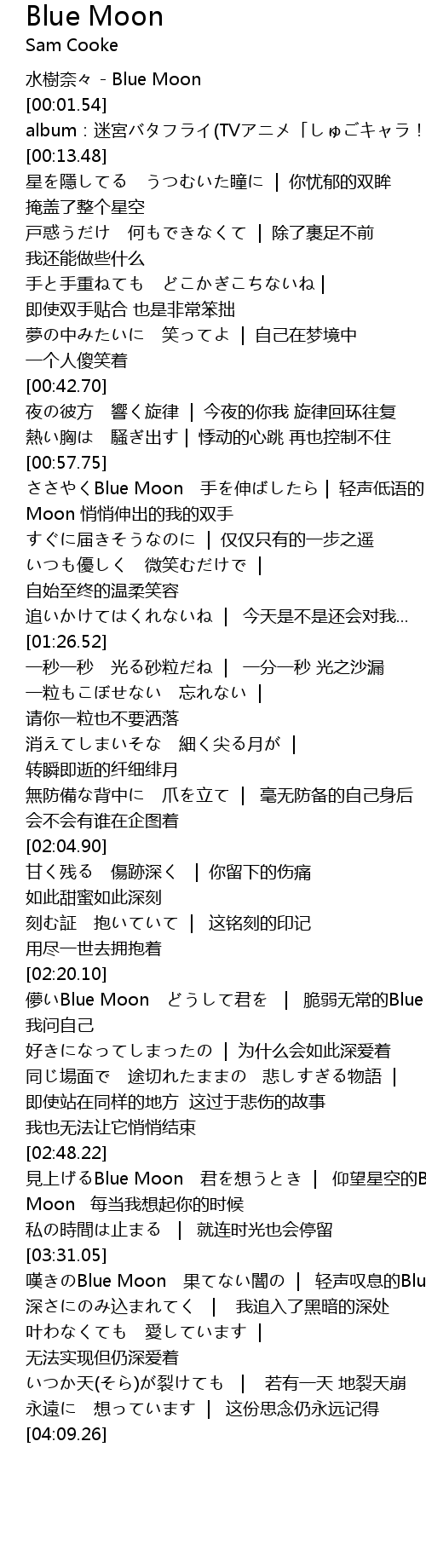 | [02:22.56] | meng Blue Moon jun cui ruo wu chang de Blue Moon wo wen zi ji |