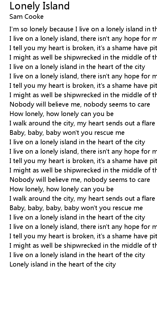 | I'm so lonely because I live on a lonely island in the heart of the city | |