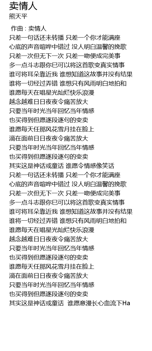 | [00:00.00] | 作曲 : 卖情人 |