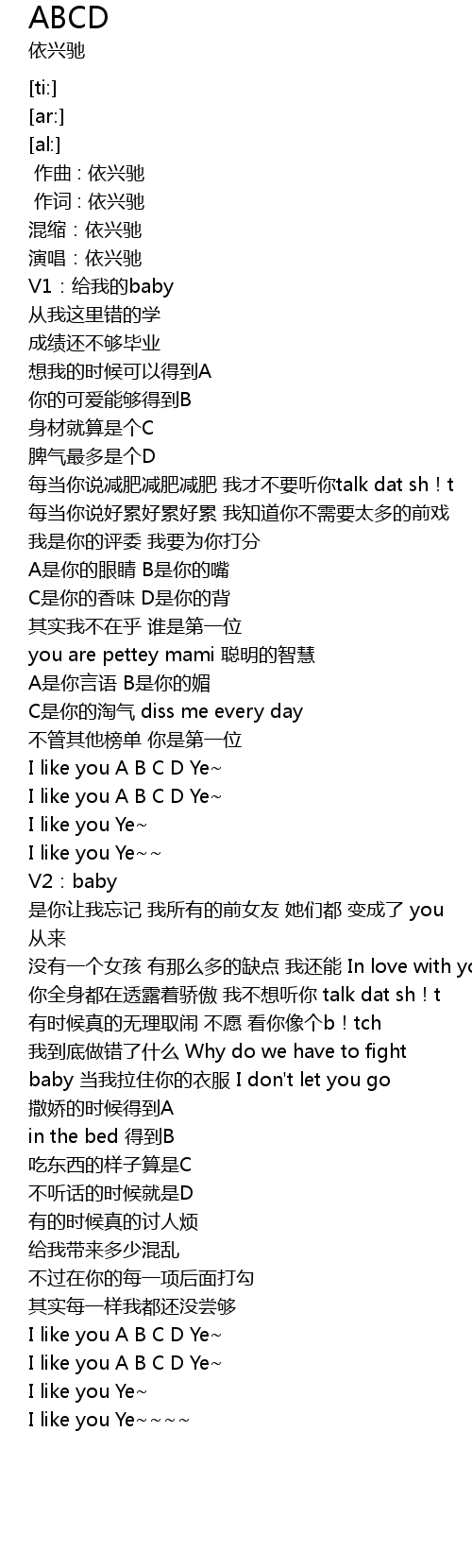 | [00:59.12] | A shì nǐ de yǎn jīng B shì nǐ de zuǐ |