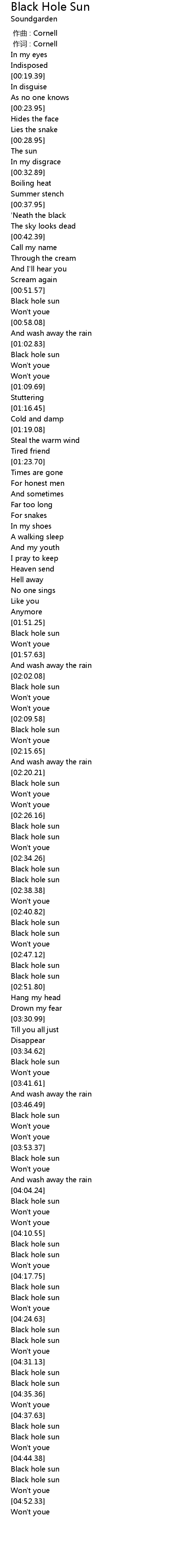 作词 : Cornell |