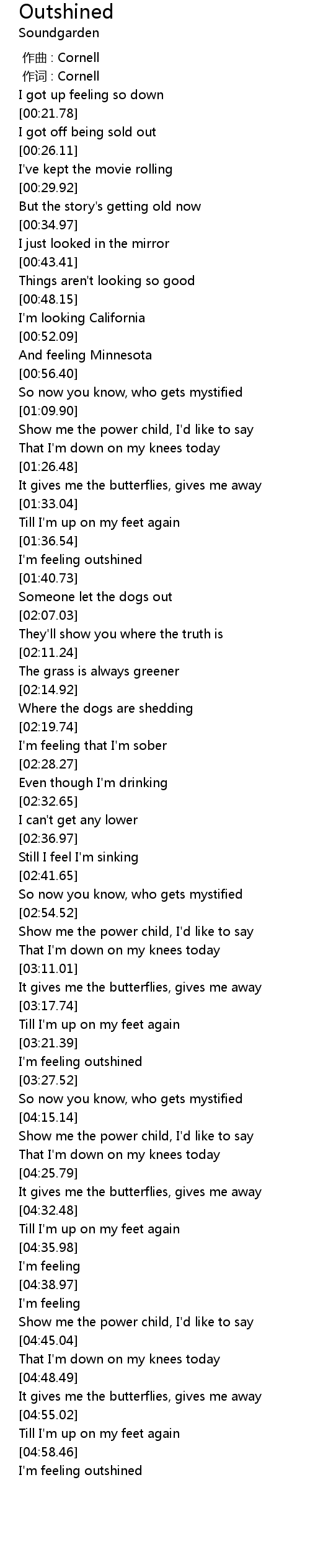 | [05:00.02] | I'm feeling outshined |