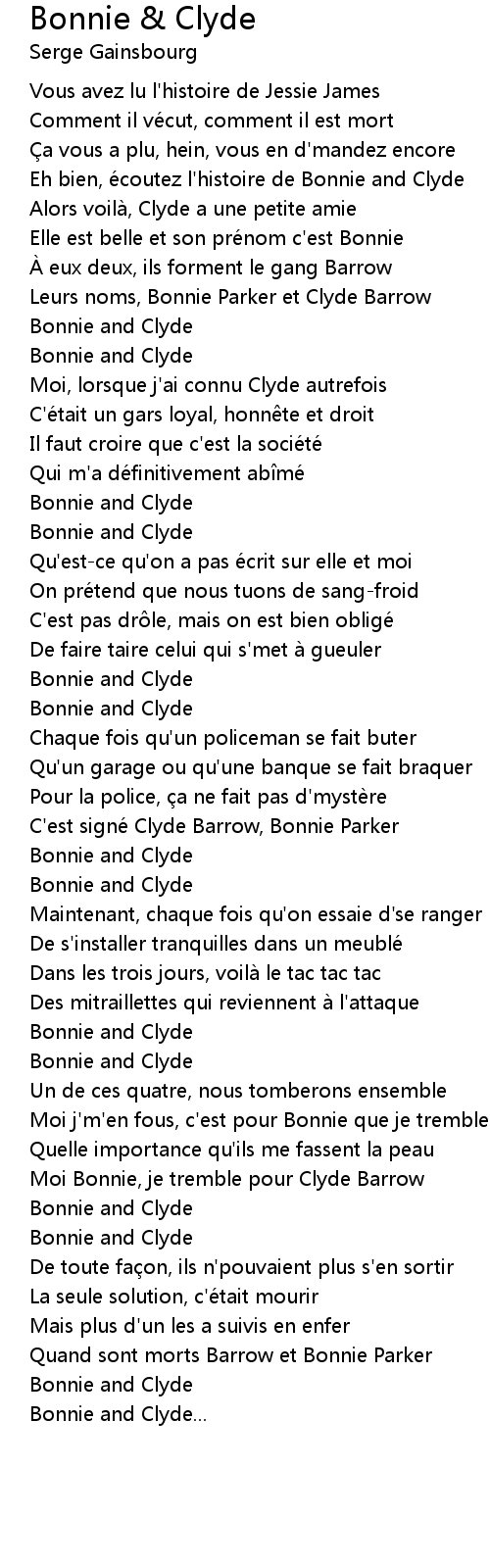 | Eh bien, é coutez l' histoire de Bonnie and Clyde | |