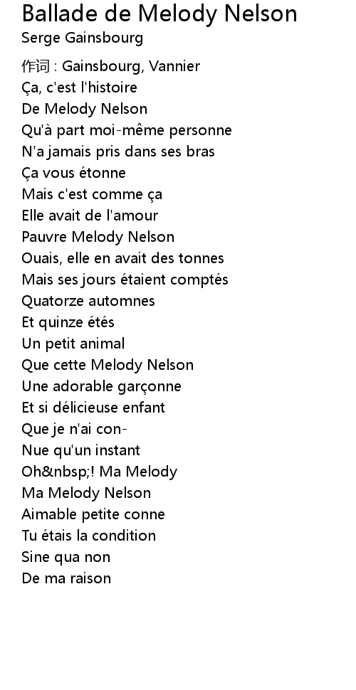 | Song | Ballade de Melody Nelson |