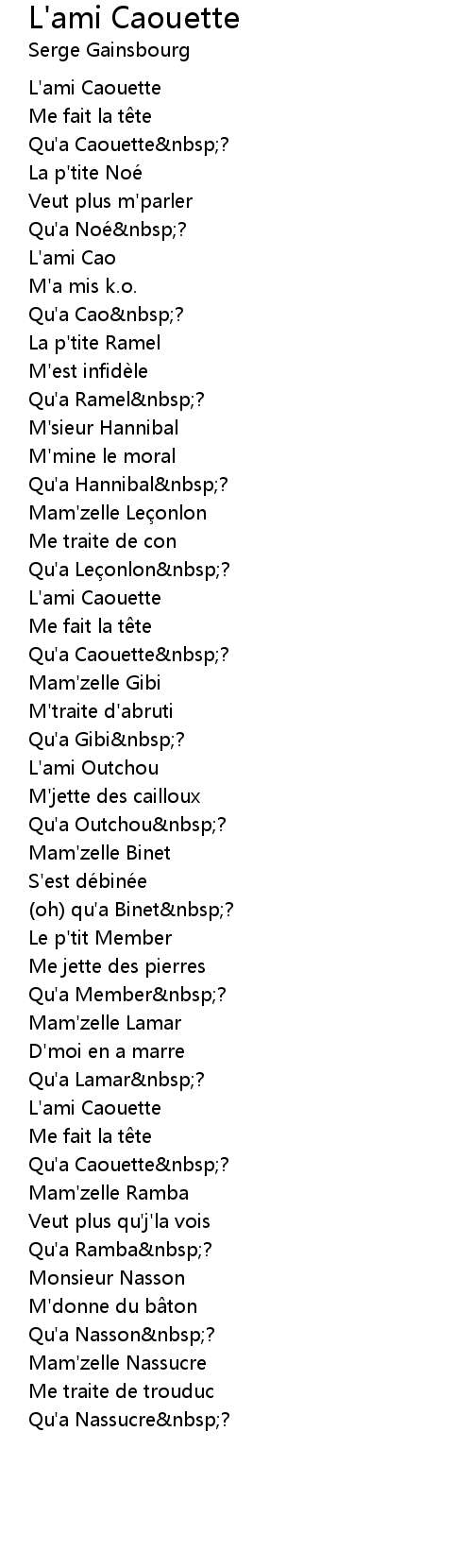 | Song | L'ami Caouette |