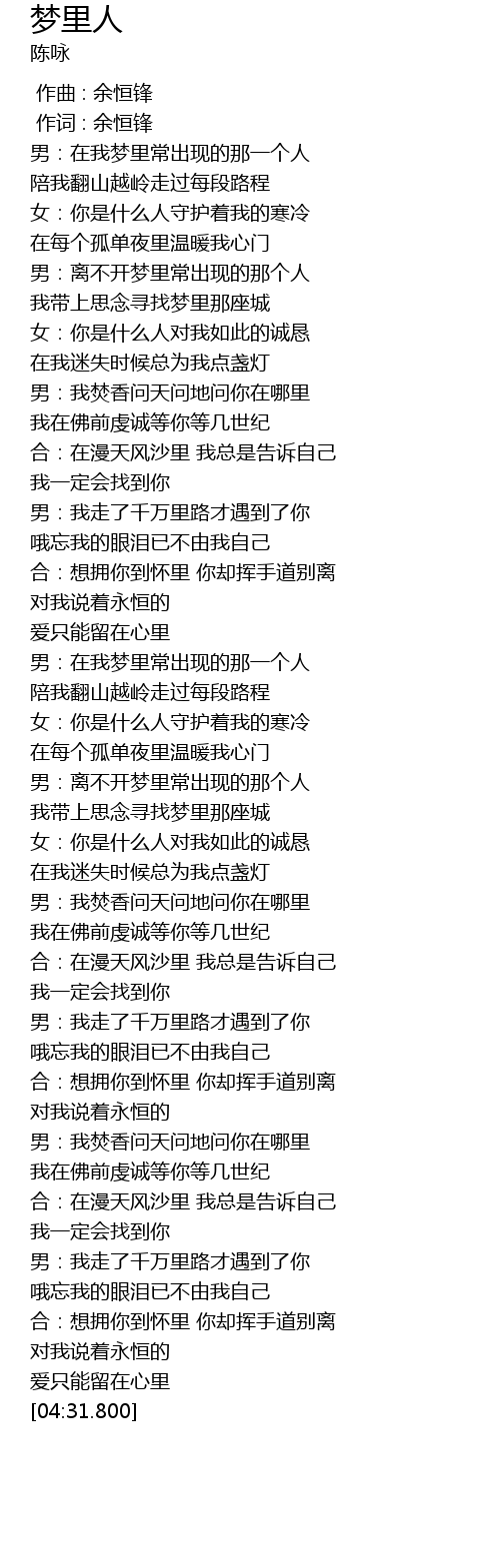 | [01:49.370] | 男:在我梦里常出现的那一个人 |
