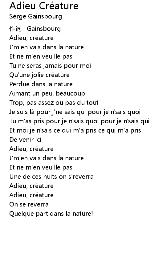 | Je suis là pour j' ne sais qui pour je n' sais quoi | |