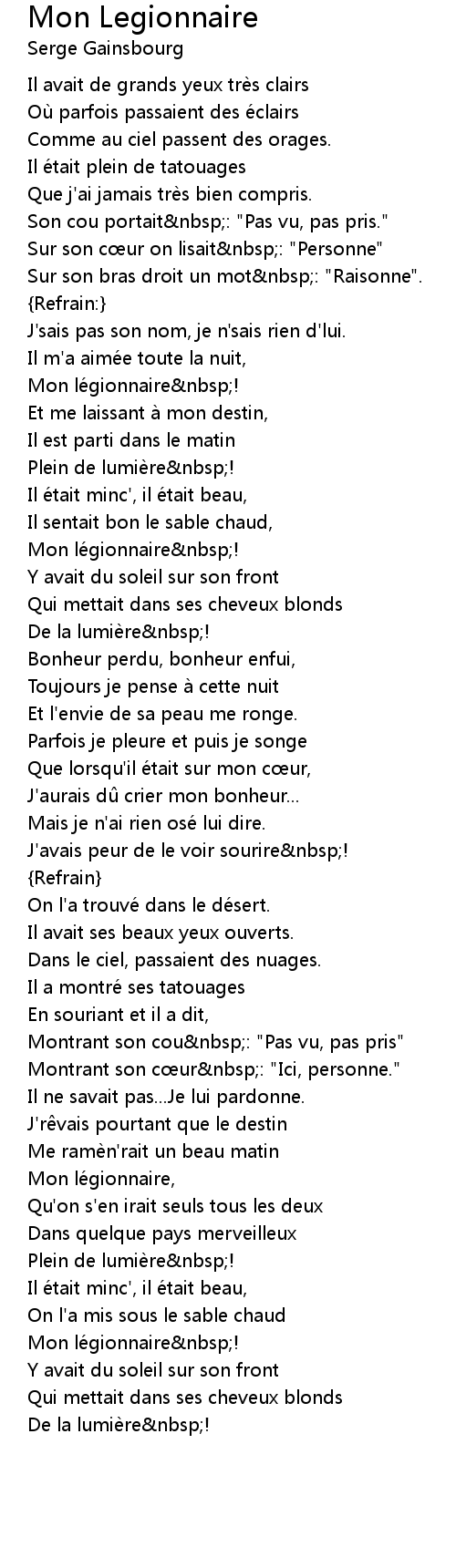 | J' sais pas son nom, je n' sais rien d' lui. | |