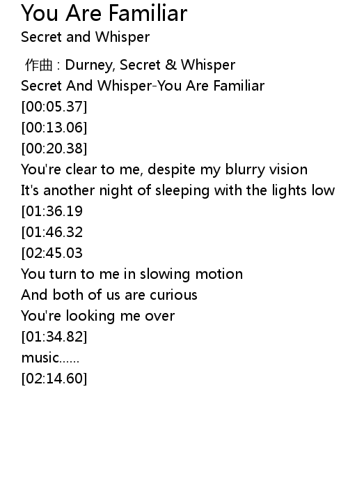 | [00:00.55] | Secret And WhisperYou Are Familiar |