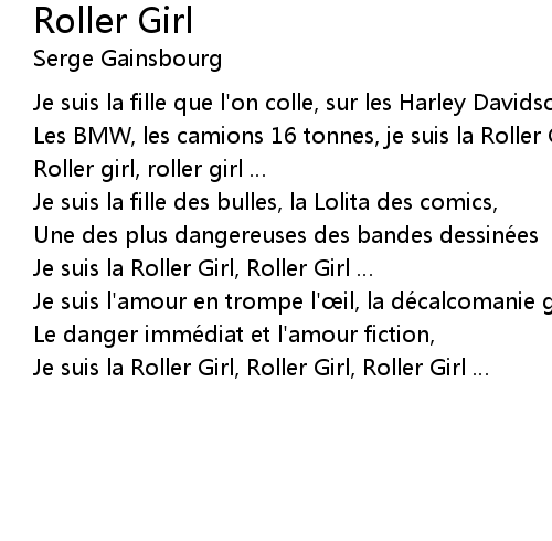 | Je suis la Roller Girl, Roller Girl, Roller Girl |