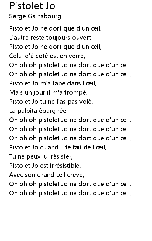 | Pistolet Jo tu ne l' as pas vole, | |
