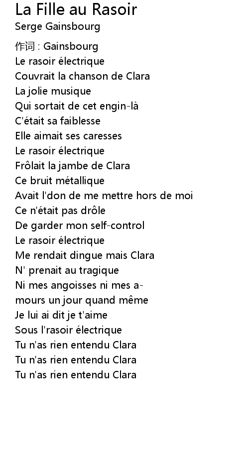 | Song | La Fille au Rasoir |