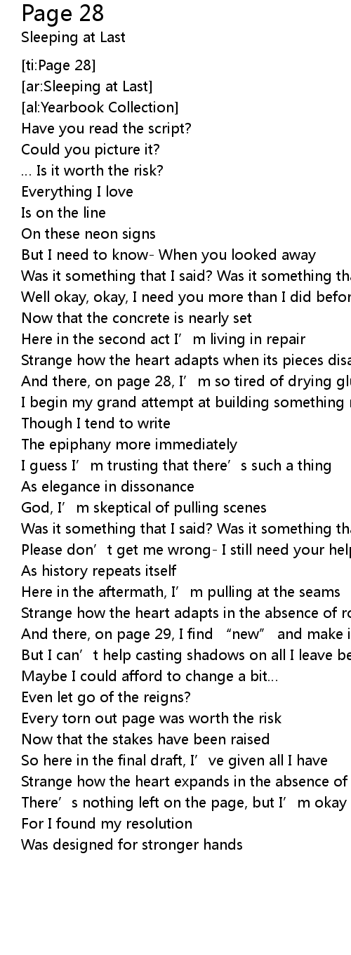 | [03:41.18] | There' s nothing left on the page, but I' m okay with that |
