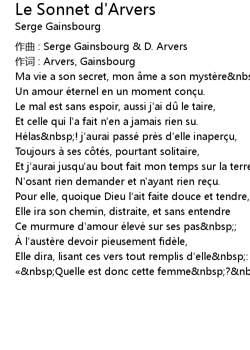 | 作词 : Arvers, Gainsbourg | |