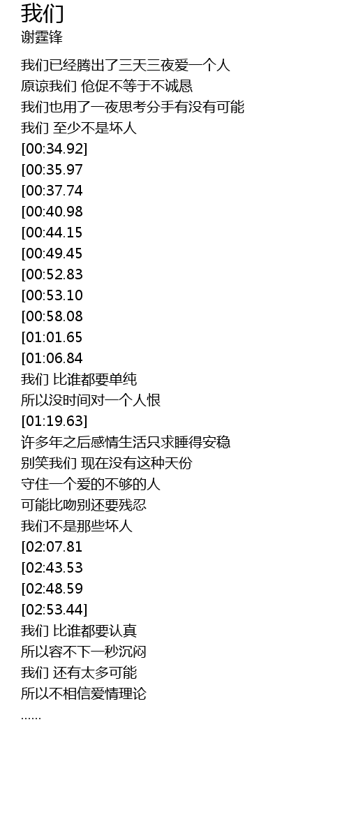 | [02:34.93][01:01.65] | 我们 还有太多可能 |