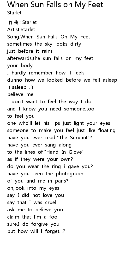 | [00:03.580] | Song:When Sun Falls On My Feet |