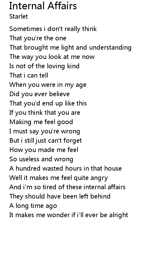 And i'm so tired of these internal affairs |