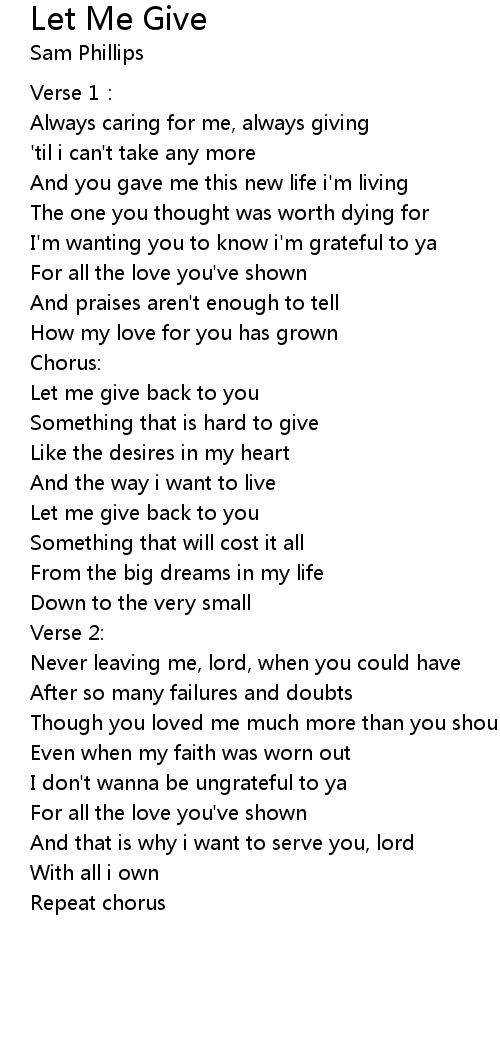 | Song | Let Me Give |