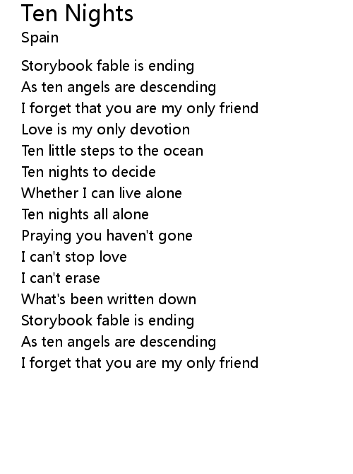 | Song | Ten Nights |