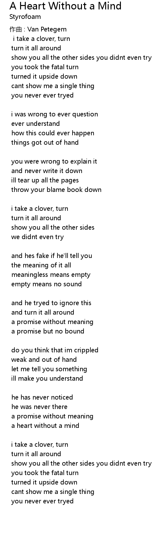 | a heart without a mind | |