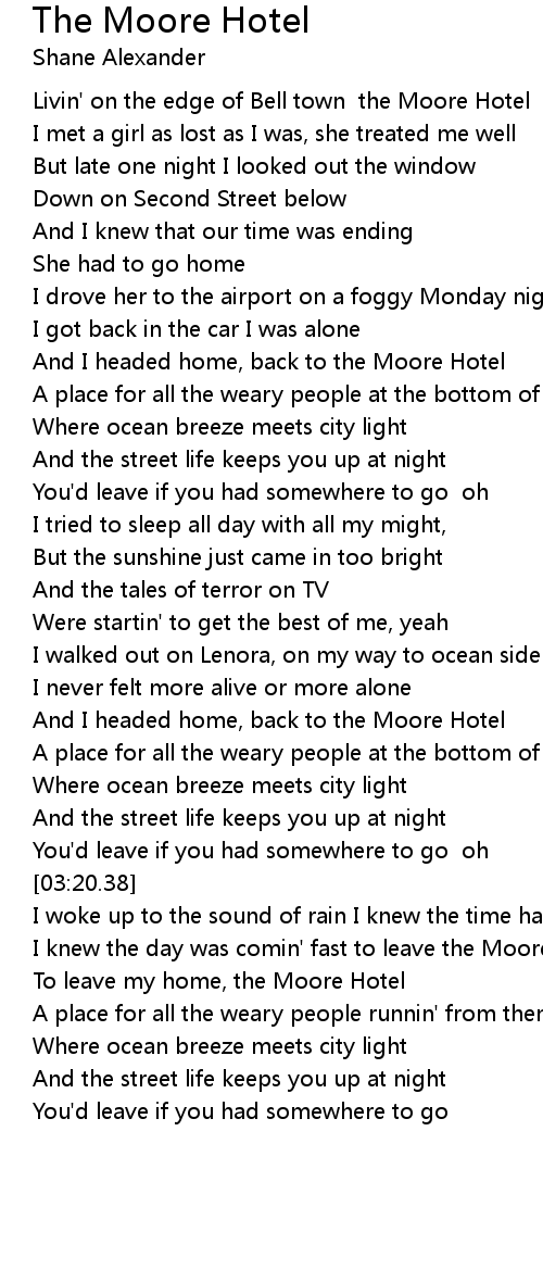 I knew the day was comin' fast to leave the Moore Hotel at last, yeah |