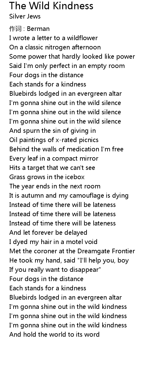| I' m gonna shine out in the wild kindness | |