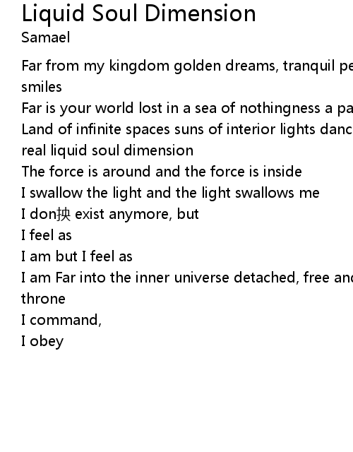 Liquid Soul Dimension Lyrics