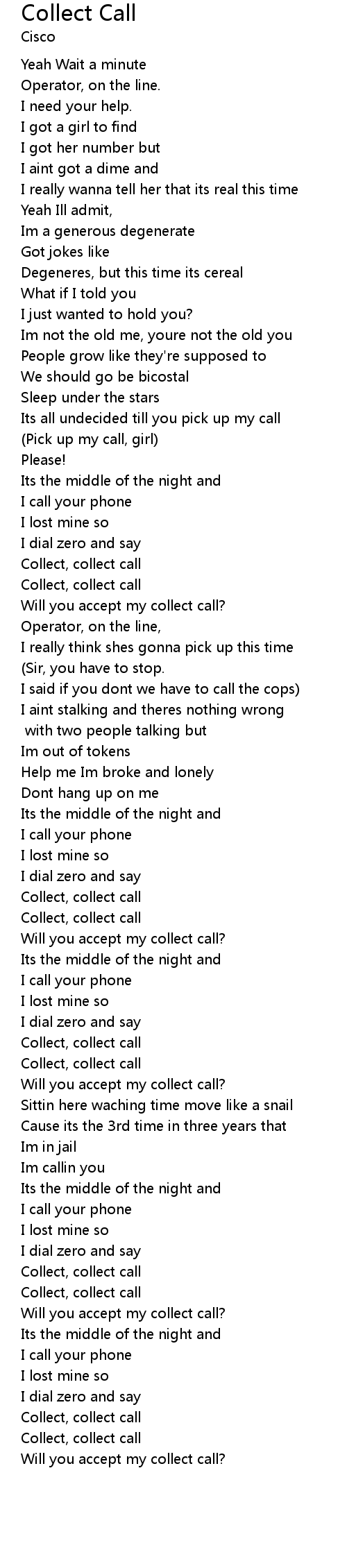| [01:41.99] | Collect, collect call |