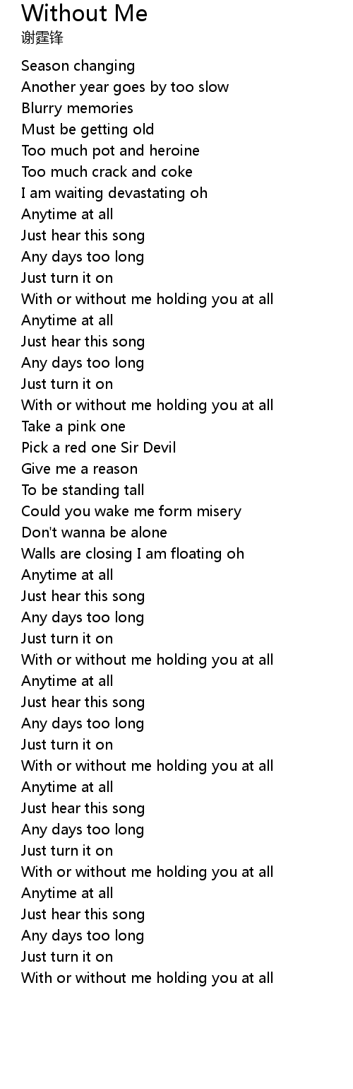 | [02:19.850] | With or without me holding you at all |