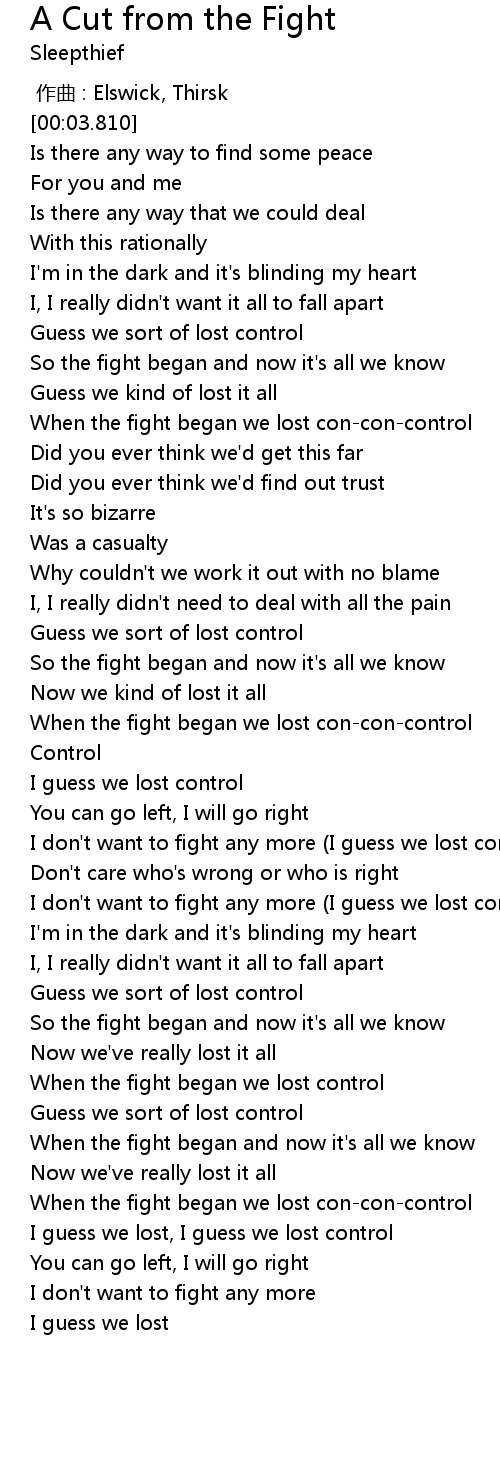 | [01:11.870] | When the fight began we lost con-con-control |