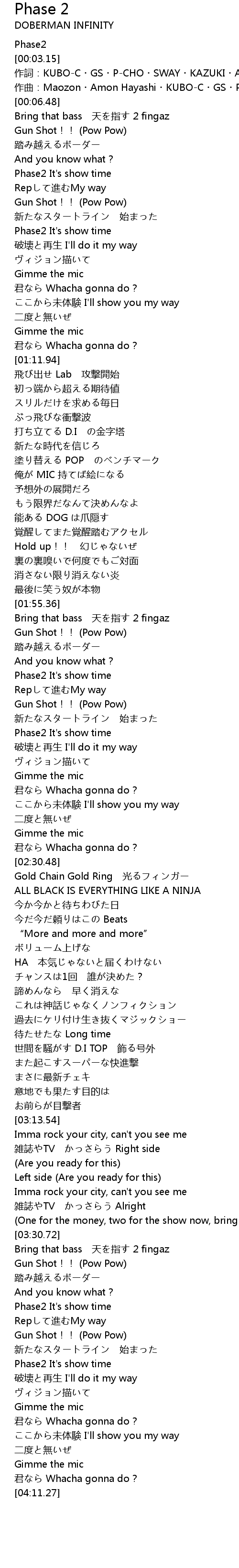 | [03:51.00] | Phase2 It's show time |