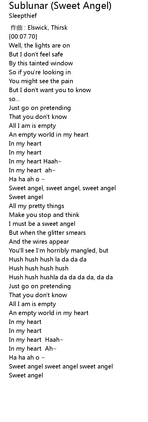 | [02:39.31] | Sweet angel, sweet angel, sweet angel |