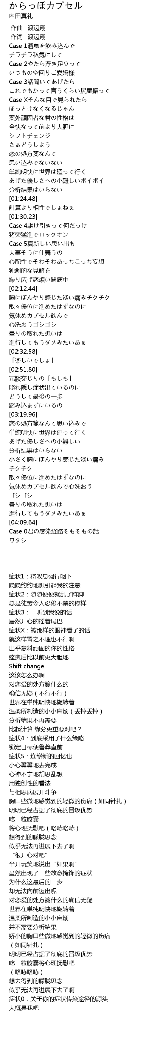 | [00:31.97] | Case 1溜息を飲み込んで |